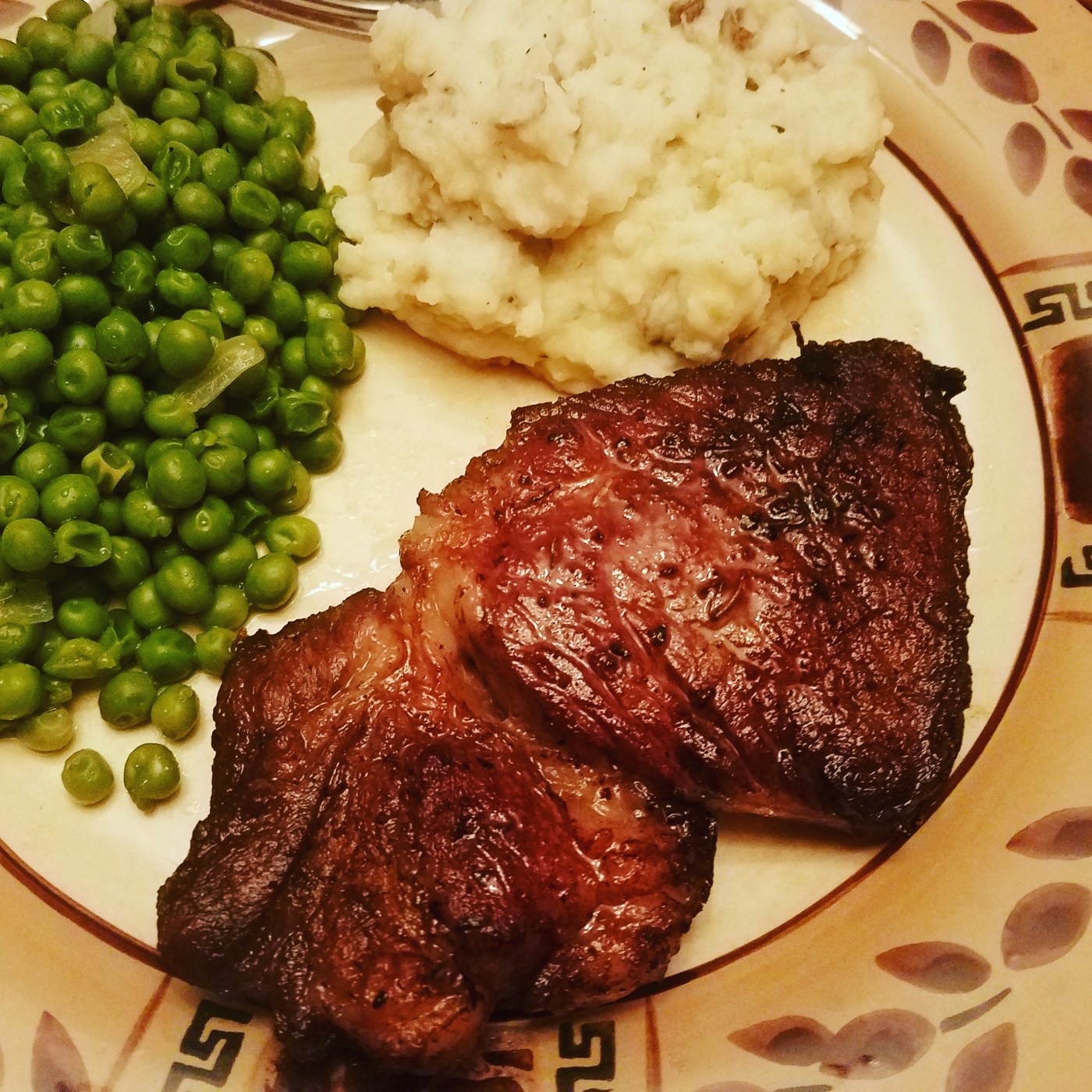 Normally this cut of meat is out of my price range but the other day at the dealership the meat lady came by lol. So I got them for half price. I will not elaborate further. I was super pumped needless to say and so were the kids. There was 2 ribeyes per pack but due to their size and thickness, I realized I could cut them in half. Only one pack was need for me and the kids. So I still have a pack left!