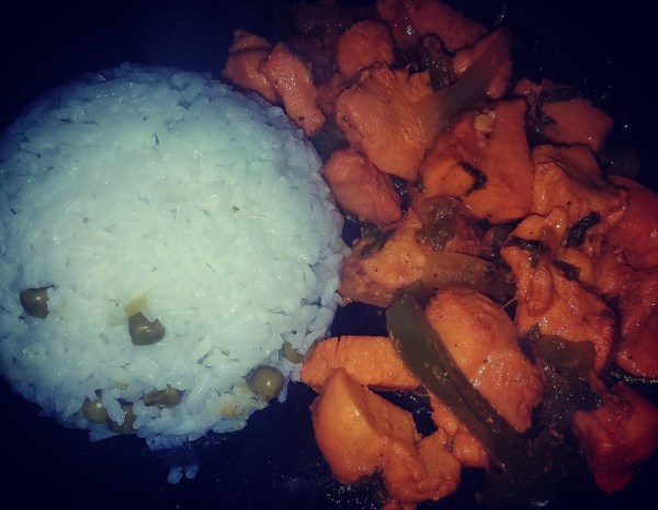 **The only thing orange about this dish is the color courtesy of Goya!** Thus it being named Faux Orange Chicken. It has undertones of Mexican and Caribbean cuisine with a little spice. A very quick stir-fry to fix and beat the race against the sun.
