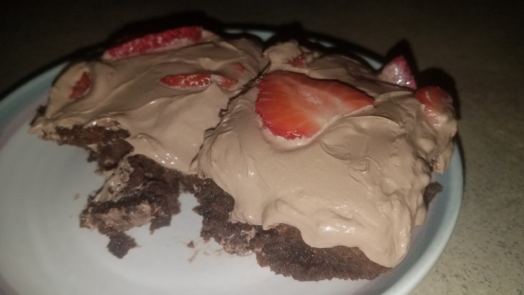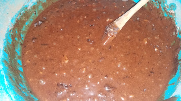 Preheat oven 350 degrees. Mix dry ingredients first. Add in the rest and mix well. Grease pan to ensure the brownies don’t stick to the bottom. Bake for about 45 minutes. Test middle with a toothpick to verify they are cooked all the way.