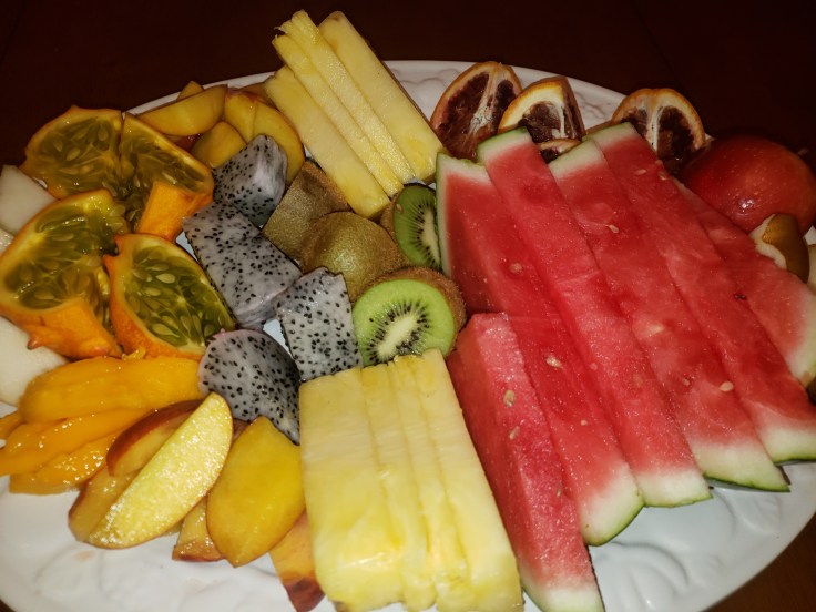 Just sharing what we are munching on during this wonderful feast day! We tried exciting more exotic fruits we’ve never had. The kids really enjoyed this because they really love sweet things. Of course there will be plenty of leftovers but I do have a Ninja so it’s no problem!