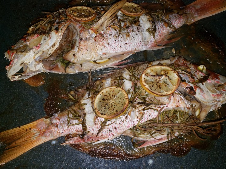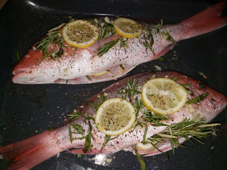 Cover over the fillets with the marinate and any vegetables as a garnish. Marinade 30 minutes. Preheat oven 350 degrees.
