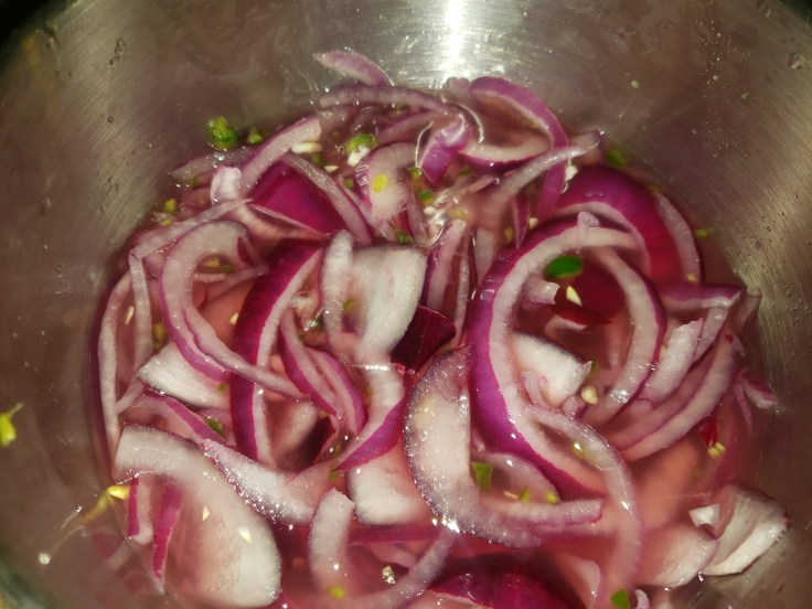 Cover a baking pan with aluminum foil. Spread out the ingredients and bake for 25 minutes.